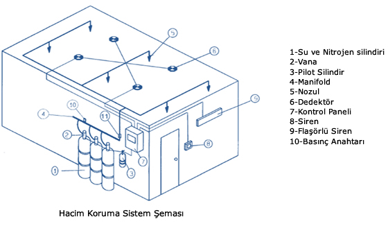 Oksijen Azaltma Etkisi : Su küçük partiküller halinde anında soğuk buhar oluşturarak sıvı fazından 1800 kat daha fazla hacim kaplar.Ortamdaki oksijen miktarı %13-%16’ya düşürülür.
