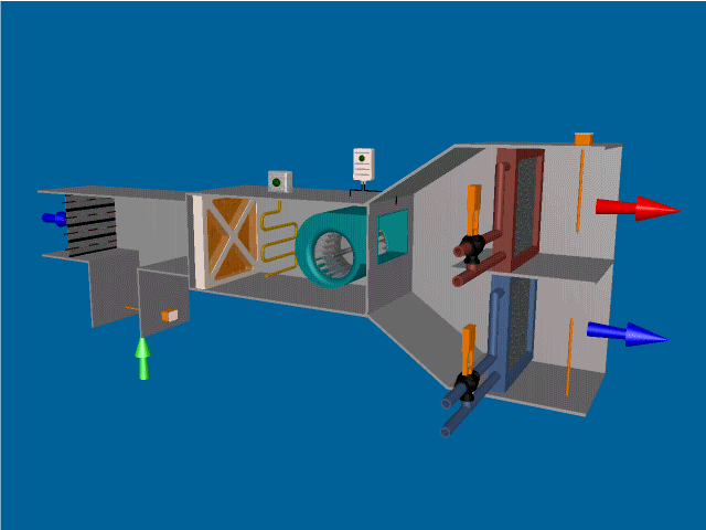 Yukarıda kısaca bahsettiğimiz Klima santrali ünitelerini daha detaylı olarak açıklayalım. Bir klima santrali, havanın hareketlendirilmesi, temizlenmesi, ısıtılması, soğutulması, nemlendirilmesi ve kurutulması (neminin alınması) için gereken ünitelerden oluşur. Havanın klima santrali içindeki yolunu izlersek, aşağıdaki elemanlarla karşılaşırız