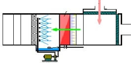 Aşağıdaki şekilde 1 konumundaki hava 2 konumuna geldiği zaman 1 konumuna göre x kadar daha fazla nem alır. Bunun için, sisteme giren havanın istenilen değerlerden kuru olması durumunda, nemlendiriciye gelmeden bir ön ısıtıcıdan geçirilir ki, bu ısıtıcı sadece havaya daha fazla nem yüklemek amacı ile kullanılmaktadır. şayet sisteme giren hava yeterince nemli ise, ya da sıcaklığı yeterince yüksek ise; ön ısıtıcı devre dışı bırakılır.