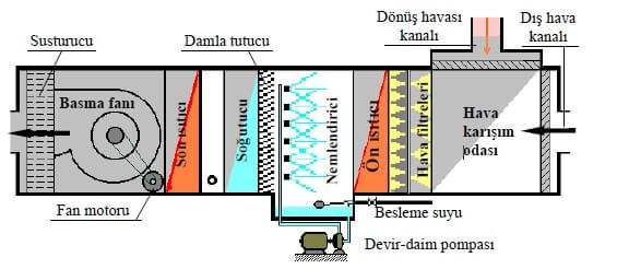 İklimlendirme santralından geçmekte olan sistem havası, nemlendirme odasında genel olarak üç değişik şekilde nemlendirilebilir. Bunlar;